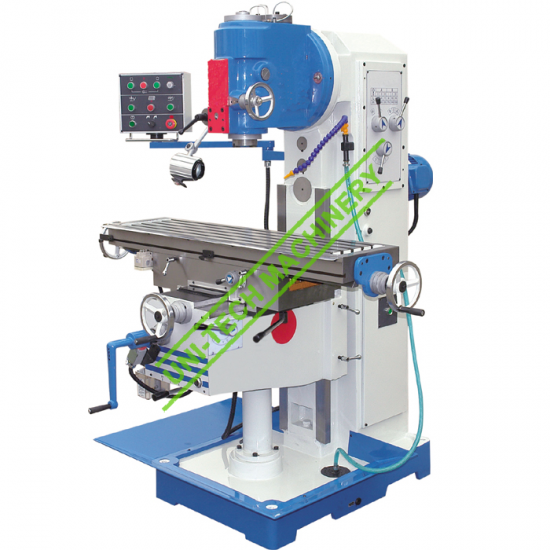 1.Driven by servo motor. 2.Table automaticfeed on X,Y,Z. 3.Automatic rapidfeed X,Y,Z. 4.Extremely rigidcutter head swivels ± 30° 5.Large set uptable features a hardened surface and is perfectly suited for clamping large workpieces. 6.Spindle head isISO40. 7.High rigidity capable of heavy load cutting. 8.Guide ways and gears are hardened and ground. 9.Manual quill feed for miro-feeds during milling and rilling,even with titled cutter head. 10.Standrd equipment includes digital 3-axis position indicator,large chip tray,and coolant system to ensure long tool life and excellent workpiece surface quality. 11.Machine frame with extra rigid design,wide knee slide and large travel sizes.